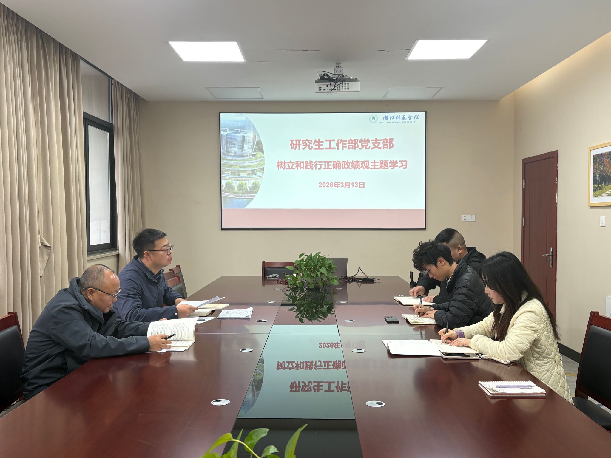 会议强调,一是要深化思想认识,筑牢政治根基。开展树立和践行正确政绩观学习教育,是贯彻党中央决策部署的政治任务,是践行党的根本宗旨、推进全面从严治党向纵深发展的重要举措。全体党员必须提高政治站位,切实把思想和行动统一到中央、省委及学校党委的部署要求上来,以高度的政治自觉投身学习教育。二是要坚持学思践悟,精准把握要义。要全面领会正确政绩观的丰富内涵、核心要义和实践要求,始终坚守为党育人、为国育才初心,紧紧围绕研究生教育事业高质量发展目标,做到学思践悟、知行合一。三是要健全长效机制,推动学用融合。将学习教育与部门核心业务紧密结合,深度融入研究生招生及培养管理、学科建设等重点工作,聚焦研究生教育高质量发展、学科一体化建设中的突出问题,以学习成果破解发展难题、提升工作质效。四是要压实主体责任,确保落地见效。部(处)班子成员要严格履行“一岗双责”,充分发挥“关键少数”示范引领作用,推动正确政绩观贯穿日常履职全过程、融入立德树人各环节,从严从实抓好学习教育组织实施,确保取得实效。